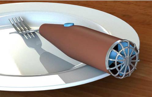 叉子里面有風(fēng)扇,摁下開關(guān)就能開吹,媽媽再也不用擔(dān)心我吃不飽飯啦!